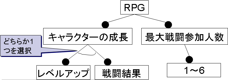 フィーチャダイアグラムは、フィーチャを表現するものですが、ゲームのデザインを表現するのにも使えると考えられます。