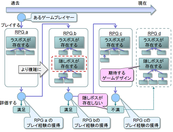 たとえば、「隠しボスが存在しない」という決定は、昔のRPGでは許容されたかもしれない。しかし、「隠しボスが存在する」というRPGのプレイ経験を持つプレイヤーにとっては、現代のRPGにおいて、「隠しボスが存在しない」という決定は、受け入れにくいかもしれない。そのため、この決定はプレイヤーにとっての不満点となりうる。