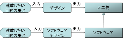次に、ソフトウェアのデザインについて考える。上の図と同様の考え方をするなら、ソフトウェアのデザインは次の図になる。